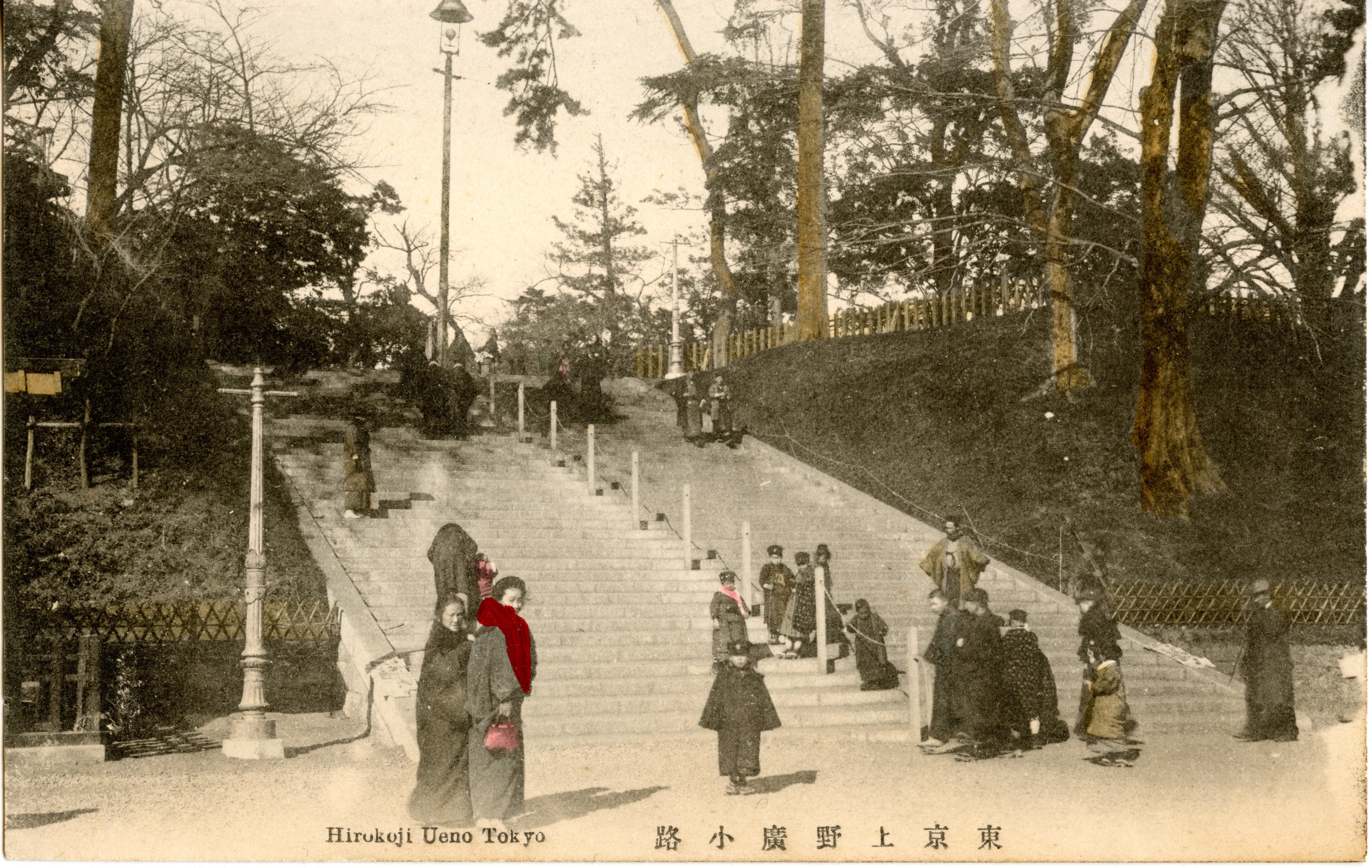 broad stone steps leading down from Ueno Park to Ueno Hirokoji; few people; predominately trad clothing