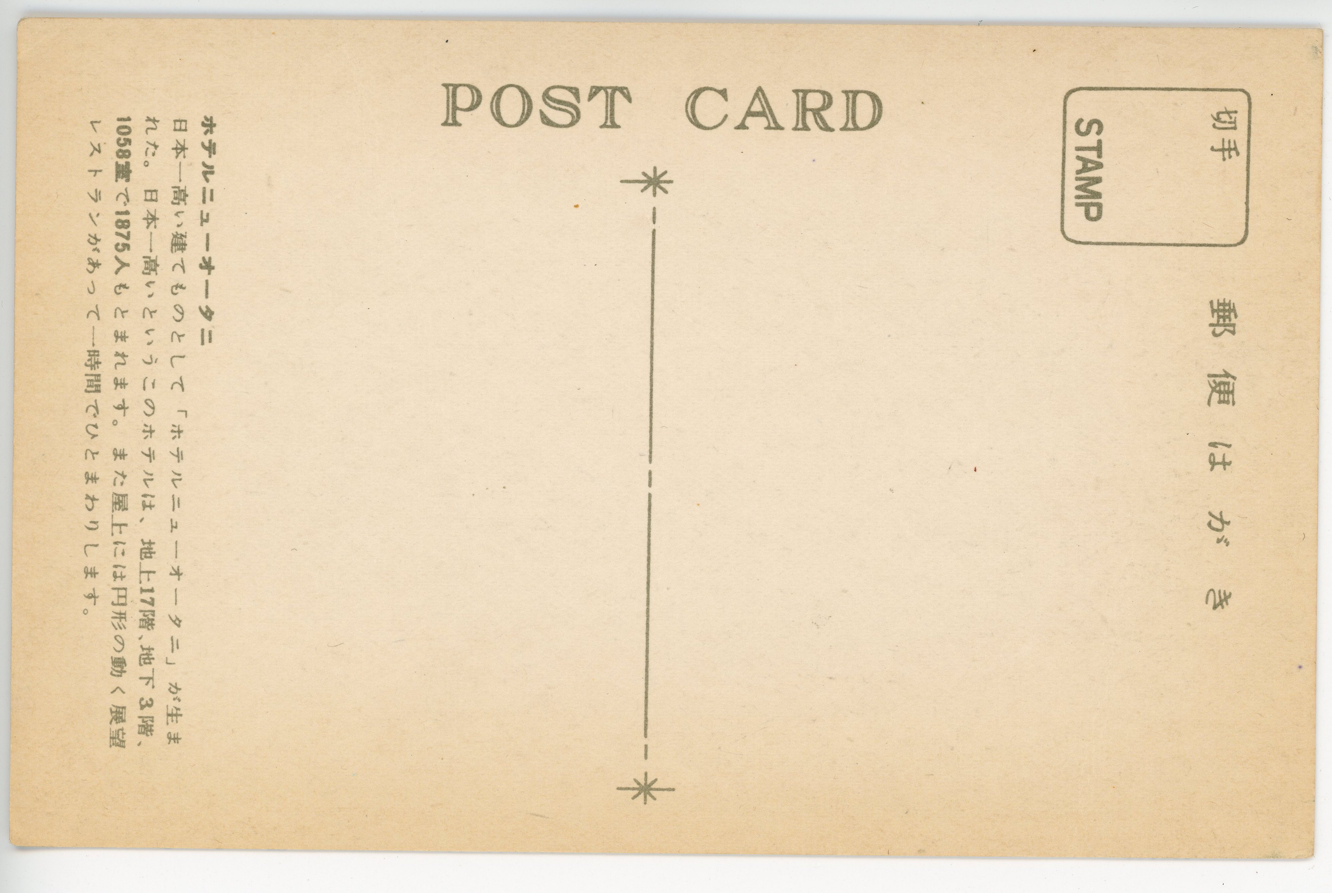 Japan's highest building "Hotel New Otani" is born. This hotel as the so-called highest building in Japan has 17 floors above ground and 3 floors undergrdound, capable of accomodating 1875 guests with 1058 guest rooms. Furthermore there is a round-shape revolving restaurant at the top, revolving at an hourly rate